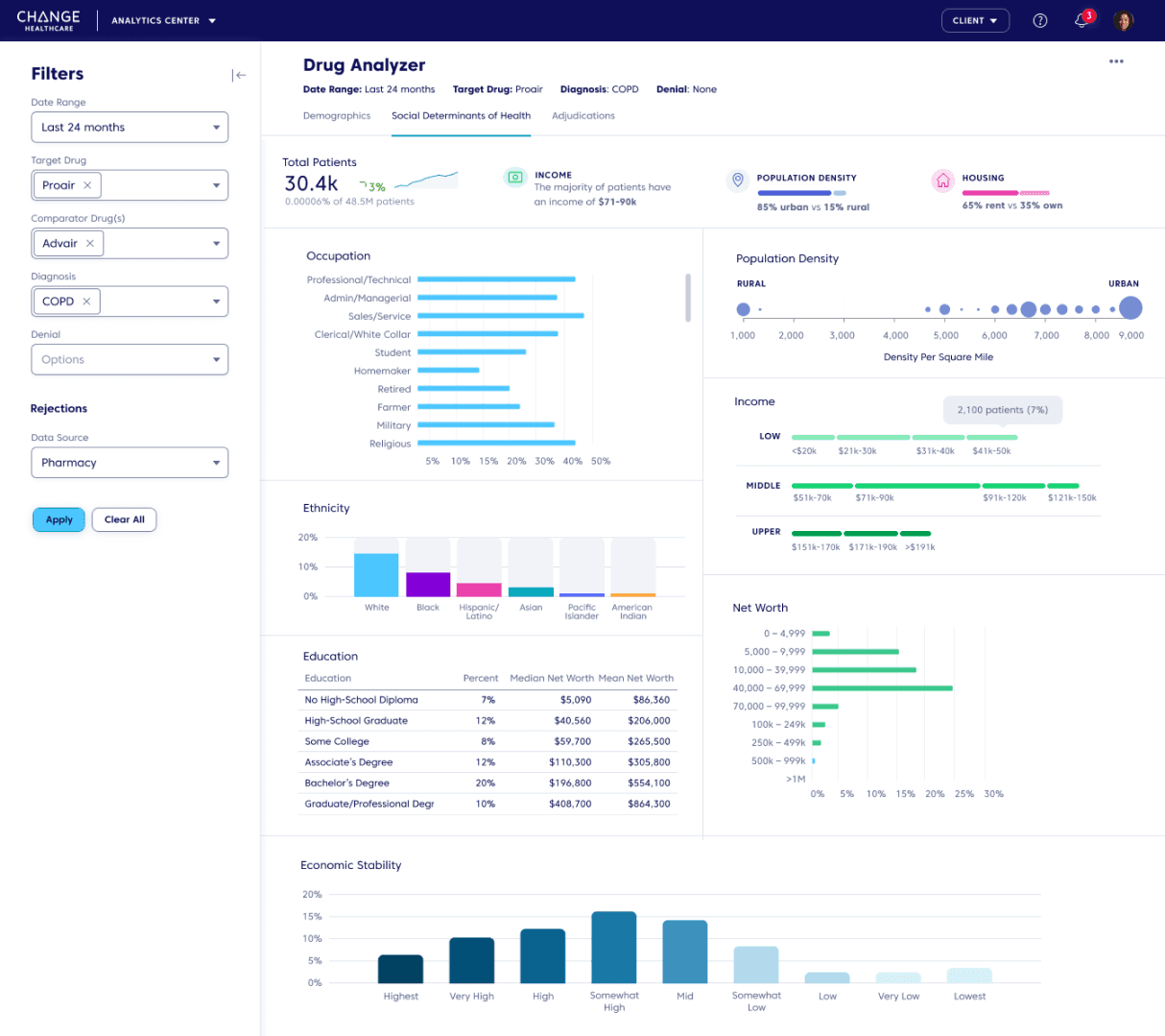 Developed visualizations for key SDOH metrics.